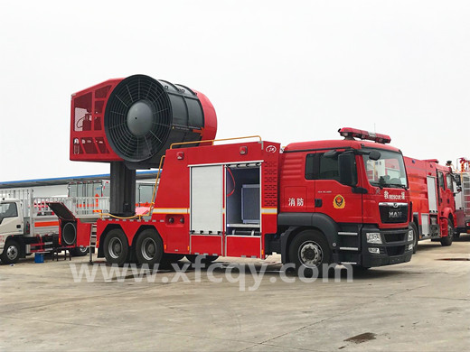 水罐容積:2.350立方米,水罐尺寸:665×2375×1545mm。整體式側后防護結構,后防護離地高度:445mm。ABS生產企業為KNORR,型號為0 486 106。主要專用裝置有排煙裝置。