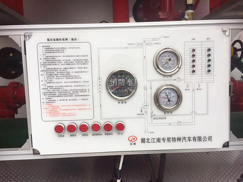 這種配置在國內來講算是少見的啦、尤其是材質方面、但是主體外觀還是消防紅的氣場、再來說說車輛尾部、尾部我們采用的進出口雙向設計、使得消防任務變得更加的便捷與迅速!泵房的操作面板更是更換全新的防偽玻璃鋼面板、更顯格調不說、質量做工上更是上了一個新的臺階;