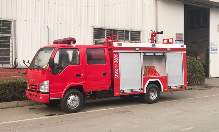 五十鈴2.5噸水罐消防車采用五十鈴QL1070BUKWY底盤改裝而成。整車由消防員乘員室和車身兩大部分組成,乘員室為原裝雙排,可乘坐2+3人,該車為內(nèi)倉(cāng)罐結(jié)構(gòu),車身前部為水罐+器材箱,后部為泵房。載液罐體為優(yōu)質(zhì)碳鋼,與底盤采用彈性連接,載水2000kg,裝備了上海雄真消防設(shè)備有限公司生產(chǎn)CB10/20-XZ型消防泵,額定流量30L/S,車頂安裝成都威斯特消防機(jī)械有限公司生產(chǎn)的PS20W型車用消防炮。