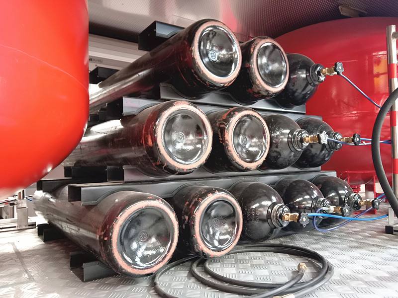 干粉車的布局相比于其他常規車型就要更加的復雜了、需要用到真空壓力的干粉罐、氮氣瓶組、以及相關的管道系統、友鏈這些東西才能將干粉通過細長細長的干粉槍給打出來、正常情況下它的射程距離也是相對水罐要小的、盡管壓力相當大。但是畢竟是干燥的粉劑、再者而言、盡管射距不遠。但是屬于電力火災的克星、可以有效的進行破滅、甚至杜絕它的再次復燃。是非常強大的!