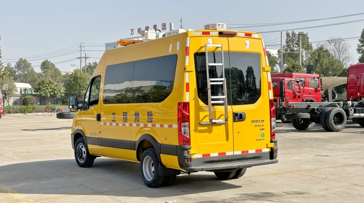隨底盤選裝不帶前霧燈,復合懸架;隨原車選裝前進氣格柵;該車配備發(fā)電機,繞線盤,切割,焊接等專用工具;選裝標志燈安裝位置,選裝車輛內(nèi)部布局,車輛頂部可全部或部分選裝設備平臺,空調(diào),升降照明燈,監(jiān)控設備,揚聲器;選裝后部爬梯;ABS系統(tǒng)控制器型號:BOSCH ABS9、BOSCH ESP9, ABS系統(tǒng)控制器生產(chǎn)企業(yè):BOSCH公司;ABS系統(tǒng)生產(chǎn)企業(yè):博世汽車部件(蘇州)有限公司,ABS系統(tǒng)型號:ESP9.隨原車選裝限速裝置,選裝限速裝置時最高車速100km/h;選裝F1CE8481K發(fā)動機時,最高車速140km/h;選裝F1AE8481G、F1AE8481D發(fā)動機時,最高車速130km/h;